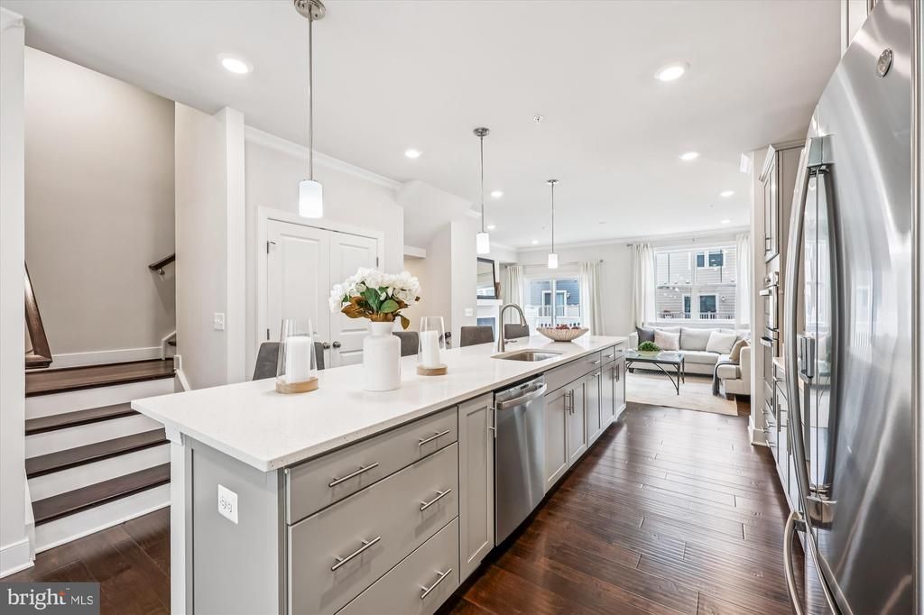 This sophisticated 4-bedroom, 4.5-bath residence spans approximately 2,599 square feet of thoughtfully designed living space, blends modern elegance with everyday functionality. Built for contemporary living, the home features premium finishes, flexible layouts, and exceptional indoor-outdoor spaces. Ideally situated just moments from Downtown Crown and Rio, you’ll enjoy easy access to acclaimed dining, stylish cafés, boutique shopping, and scenic lakeside paths. Commuters will appreciate immediate access to I-270, while neighborhood amenities—including a pool and clubhouse—are close by. The entry level welcomes you with a bright, versatile space ideal for a home office, fitness studio, or lounge, complete with a full bathroom with shower—perfect for guests and added flexibility. On the main living level, an open-concept design takes center stage. The chef’s kitchen features an expansive quartz island, stainless steel appliances, and generous cabinetry, flowing seamlessly into a polished dining area and a sunlit living room anchored by a gas fireplace. A conveniently located half bath adds everyday ease. The third level offers three well-appointed bedrooms, including a serene primary suite with a walk-in closet and spa-inspired bath, plus an additional full bath and a convenient laundry area. The premium high-efficiency 2-in-1 washer/dryer conveys with the home, allowing wash-and-dry convenience in a single cycle. The top level is a true retreat, ideally suited for multi-generational living, long-term guests, or a private secondary suite. It features a private bedroom, full bath, bonus living area, and an expansive rooftop terrace. This elevated outdoor space is ideal for relaxing evenings, entertaining guests, or enjoying neighborhood views. Completing the home is a full-size two-car garage, EV-ready with professionally installed wiring—an excellent feature for future charging setup. This exceptional residence delivers the perfect balance of luxury, comfort, and location, surrounded by some of the area’s most vibrant shopping, dining, and entertainment options.